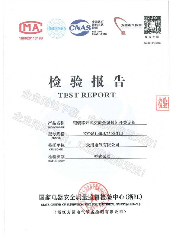 鎧裝移開(kāi)式交流金屬封閉開(kāi)關(guān)設(shè)備檢驗(yàn)報(bào)告